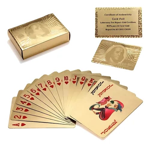 O Baralho Dourado é a escolha perfeita para todos os apaixonados por jogos de cartas. Com 52 cartas resistentes e fabricadas em plástico, este baralho é ideal para partidas intensas, oferecendo durabilidade e uma experiência de jogo inigualável. A sua resistência à água garante que você pode jogar em qualquer ambiente, sem se preocupar com derramamentos ou umidade.